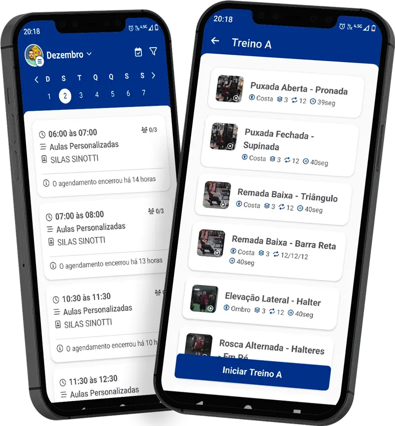 Você agenda diretamente pelo nosso aplicativo (NextFit), escolhendo os horários disponíveis conforme sua rotina.